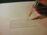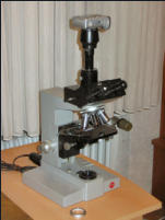 Die Wassertröpfchen werden mit einer Braunüle (2 ml) und einer entsprechenden Spritze mit ruhiger Hand auf einen sorgfältig gereinigten Objektträger “aufgetupft”. Es ist unbedingt notwendig, die Objektträger mit fettlösendem Spülmittel zu reinigen und mit klarem Wasser abzuspülen. Bedingt durch die Dunkelfeldmikroskopie werden noch so kleine Verunreinigungen des Objektträgers gnadenlos mit abgebildet und stören somit die eigentlichen Beobachtungen.Es empfielt sich, eine größere Anzahl von Tröpfchen zu erzeugen, da nicht jeder Auftropfversuch mit der Spritze gleich große runde Tröpfchen hervorruft. Der “menschliche Faktor” spielt hier natürlich auch eine Rolle. Idealerwise sind die Tröpchen kreisrund und haben einen Durchmesser von ca. 2 mm.Das Austrocknen der Wassertröpfchen dauert je nach Randbedingungen maximal 5 Minuten. danach wird der Objektträger unter dem Mikroskop analysiert. Die Verwendung eines Dunkelfeld-Kondensors und eine 40-fache Vergrößerung erscheint am sinnvollsten.Die photographische Dokumentation erfolgte hierbei unter Verwendung eines Leitz-Dialux-Mikroskops mit einer Canon Powershot A520 wie nebenstehend abgebildet.Diese Digitalkomera hat den Vorteil, dass sie die Montur eines Adapersvorsatzes durch einen bajonettähnlichen Vorsatz ermöglicht, um ein Mikroskop-Okular aufzunehmen. Die Verbindung zwischen Adaptervorsatz (Original von Canon) und Okular wurde selbst auf der Drehbank gefertigt.